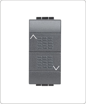 Выключатель жалюзи кнопочный на две нагрузки Bticino LivingLight, на винтах, антрацит