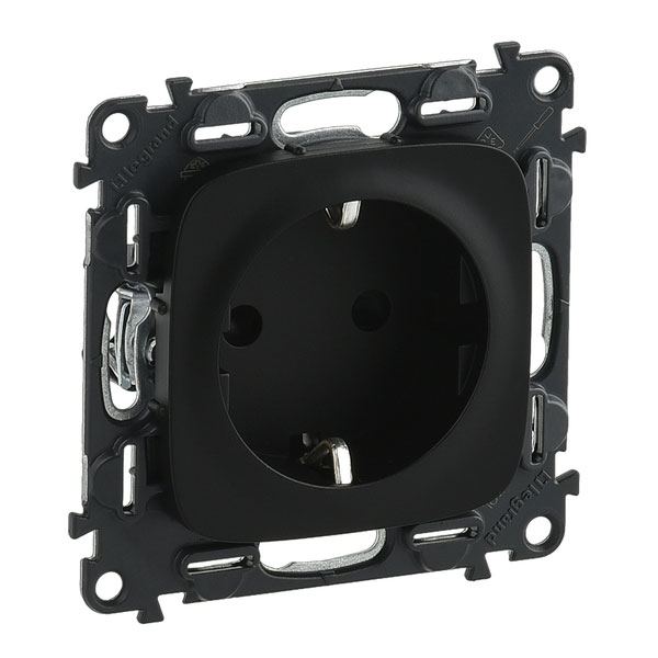 Розетка с заземлением Legrand Valena Allure, с защитными шторками, на клеммах, антрацит
