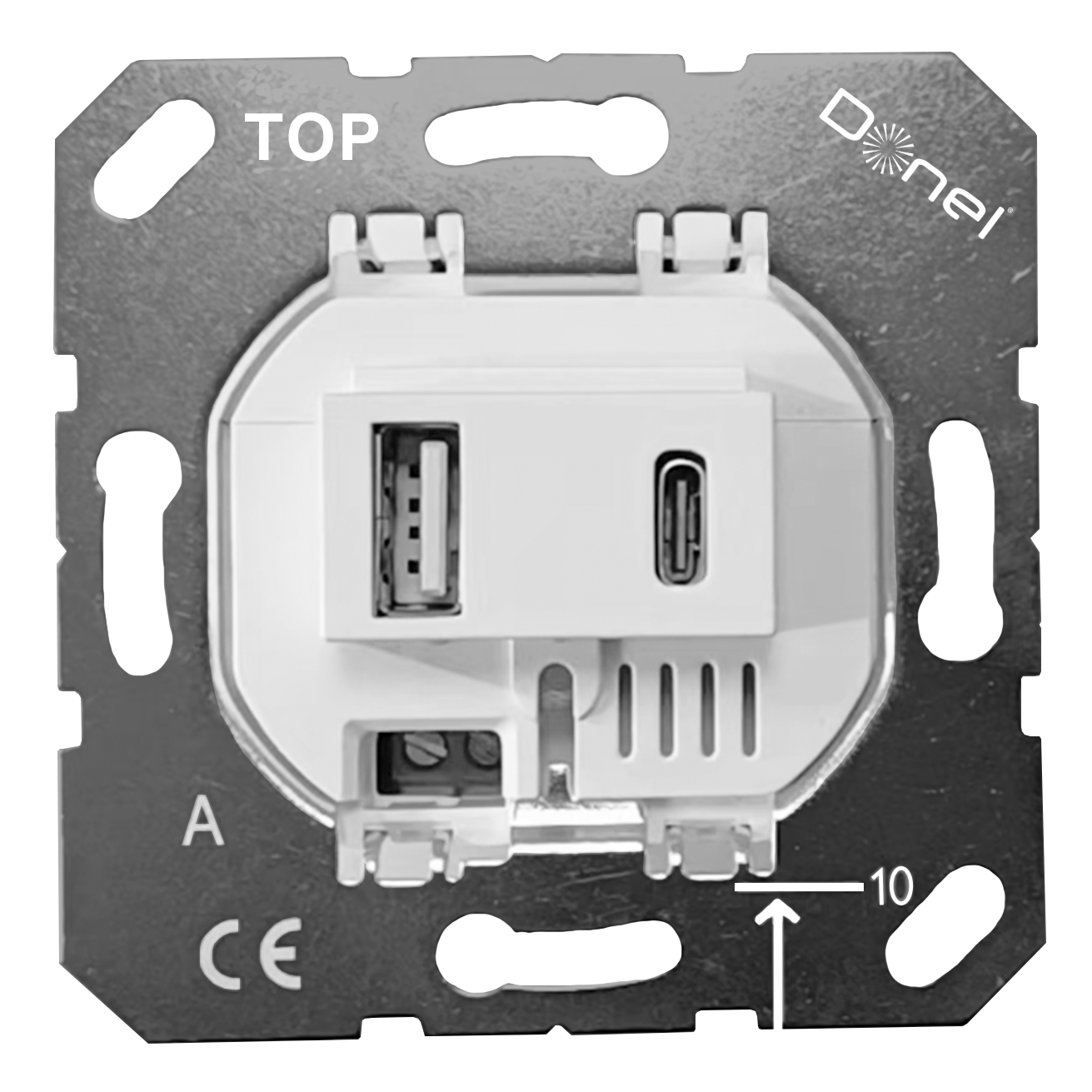 Розетка USB для зарядки двойная тип A + тип C на 3100mA, тип A:max 18W, тип С:max 32W, производство Donel, механизм без накладки, белый