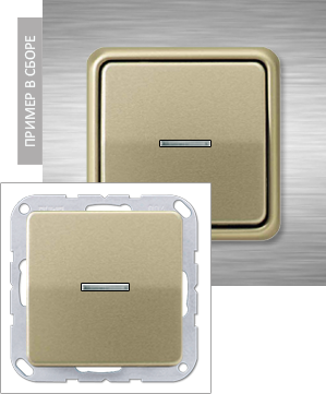 Выключатель 1-но клавишный двухполюсный самовозвратный с подсветкой, золотая бронза