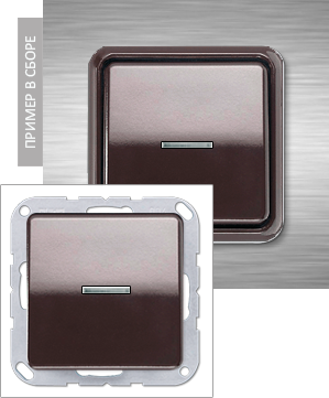 Выключатель 1-но клавишный двухполюсный самовозвратный с подсветкой, коричневый
