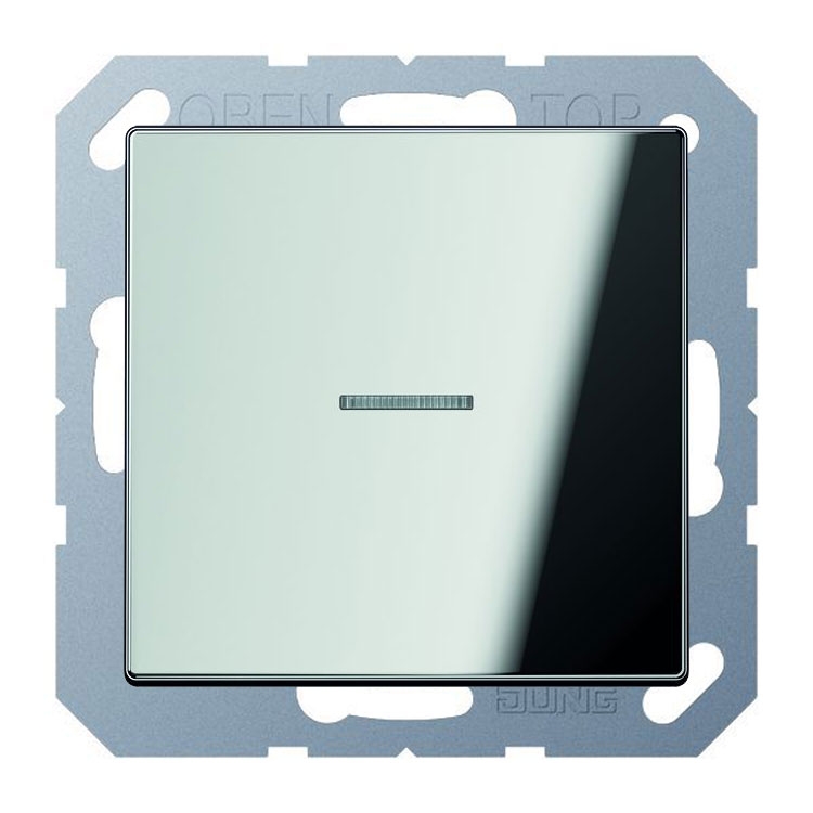 Выключатель 1-но клавишный двухполюсный самовозвратный с подсветкой, блестящий хром